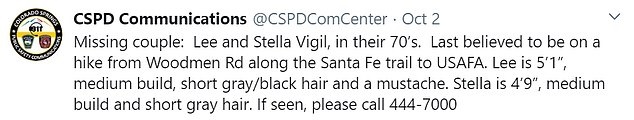 Stella and Lee Vigil were a Colorado Springs couple who were reported missing on Friday evening after failing to return from an Edmundson Trailhead hike.