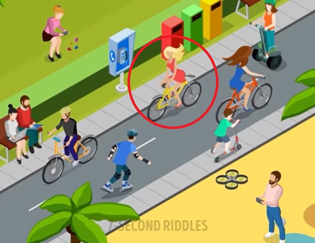 If you need a bit of help, here’s also a very valuable hint. The mistake has something to do with one of the people riding a bike!