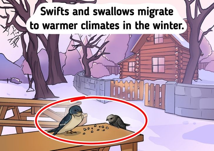 Have you cracked the puzzle yet? Something in that picture doesn’t make any sense. If you need a hint, here’s what you should keep in mind. It’s wintertime in the image. There are two birds on the table. Does that ring any bells yet?