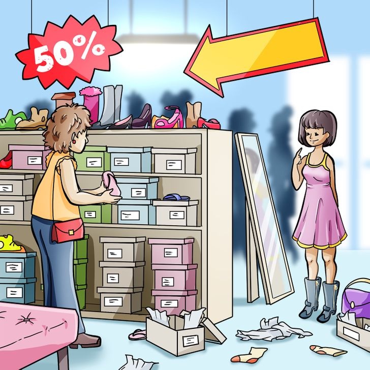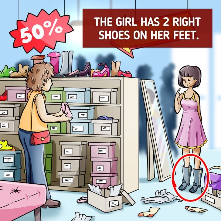 Is there something wrong with those slippers that the girl’s mother is holding? Or perhaps something is off about the items on the display?