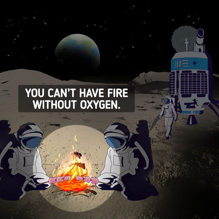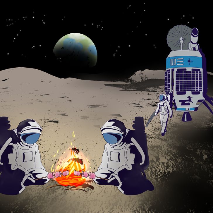 The picture shows astronauts having a barbecue party on the moon. The earth is also visible in the background. But there is something very wrong with the picture!