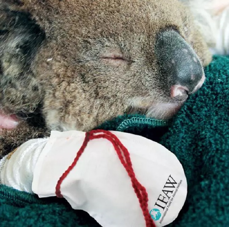 In this battle, help has come from half a world away in the form of special mittens for affected koalas. For the joeys, little pouches have also been sewn together to protect their little paws.