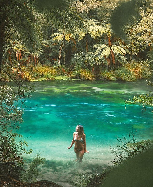 “This was at the Tarawera Falls River NOT Blue Springs,” she shared with her followers.