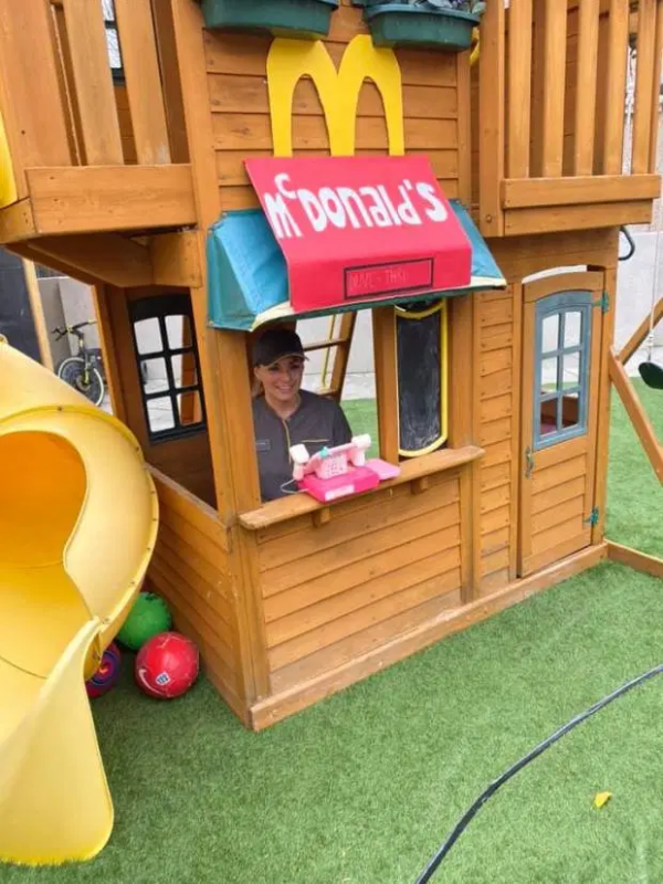 A creative mother transformed her garden into a McDonald’s drive-thru for her daughter’s 17th birthday.