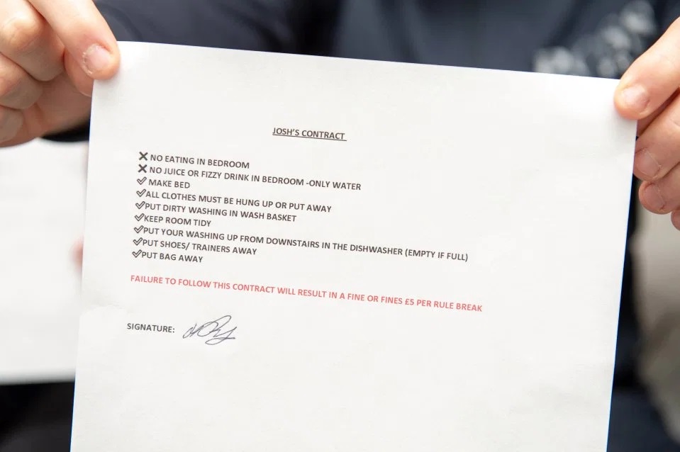A clever mother has come up with a cleaning contract that she forced her messy teens to sign in order to get them to stop littering in her house.