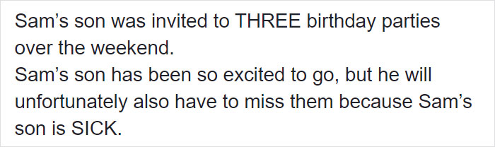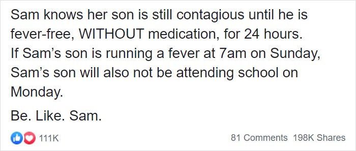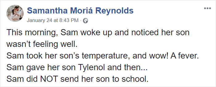 Here’s the post Samantha put up to slam some parents who send their kids to places when they are sick.