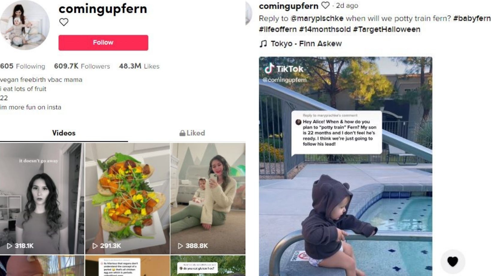 Alice Bender, a mom, and an influencer share her life raising a 14-month-old son Fern on her TikTok account @comingupfern, where she has more than 600,000 followers.