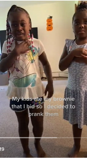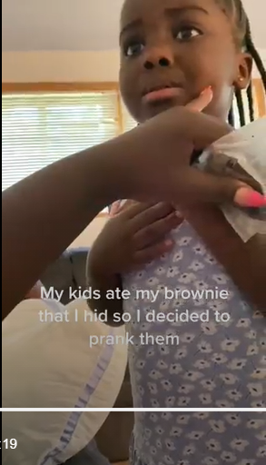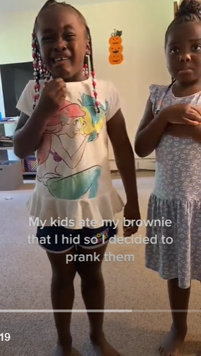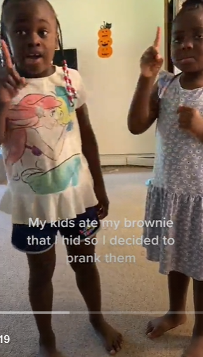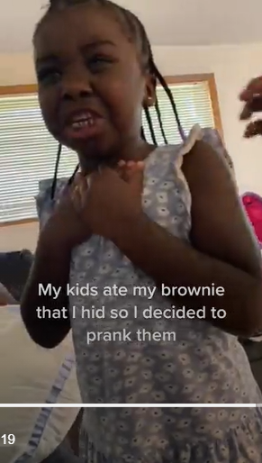 The video was captioned with: “My kids ate my brownie that I hid so I decided to prank them.”