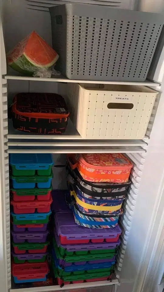 To keep all the lunchboxes properly stored, Suzanne has a separate fridge at home where she stores all 25 boxes of them.