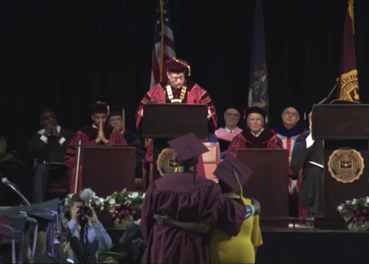 Ari Harris, the assistant communications director for the university, explained, “One of Stephan’s friends works in President Davies’ office as a student worker. She saw a post on Stephan’s Facebook page about Mrs. Wilson skipping her ceremony in order to watch Stephan walk.”
