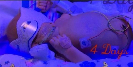 When her son was born, he had severe jaundice and needed a full blood exchange and more blood transfusions.