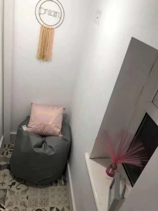 She posted online: “My cupboard on the stairs transformed from my husband’s work tools storage to a beauty room for my 3 daughters.