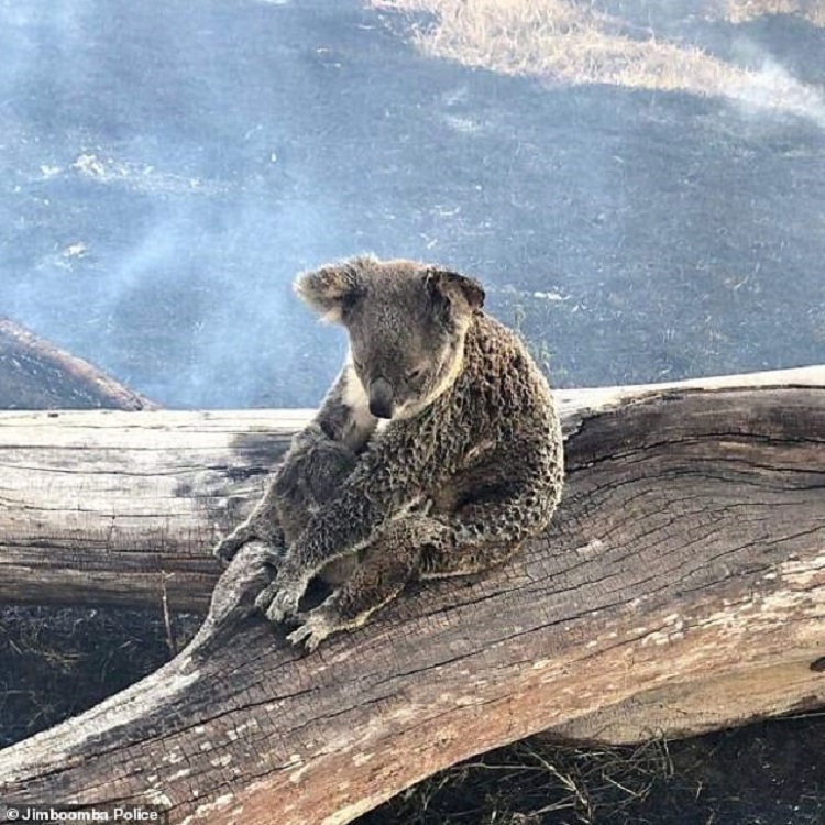 The pair were found cowering on a fallen tree as the out-of-control blazes obliterated their habitat in Canungra, in southeast Queensland, in September.