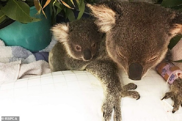 Fortunately, firefighters were able to rescue the nine-year-old Ainslee and Rupert and were transported to RSPCA Queensland. Because Ainslee was able to shelter Rupert, the young koala only suffered from smoke inhalation.