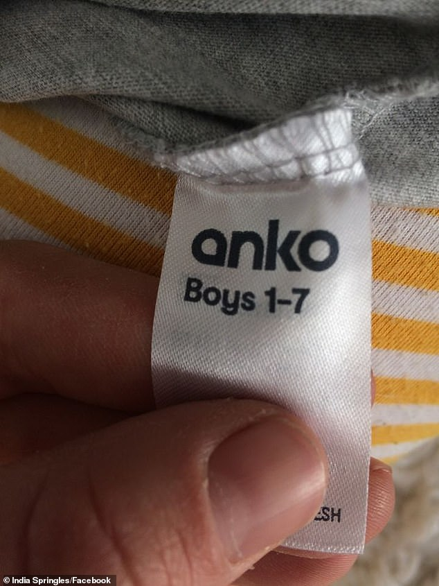‘Children’s clothing doesn’t need to have gendered labels. Children should be free to pick what they want to wear without their gender being called into question,’ Springle said.