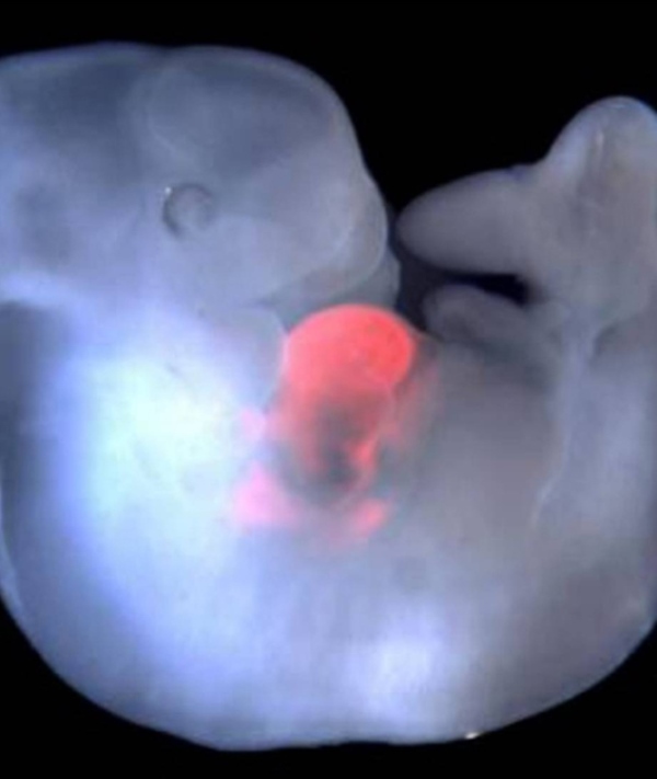 5-day old piglet embryos had monkey stem cells injected into them that had been changed to have a fluorescent protein so scientists can find out where the cells would end up.