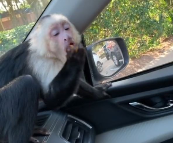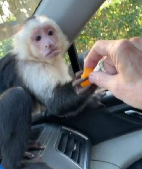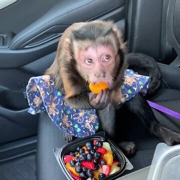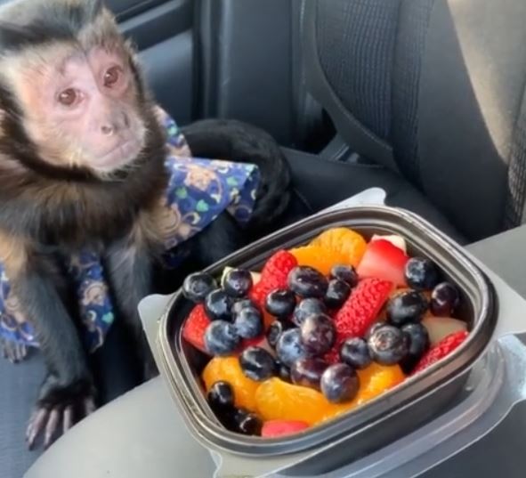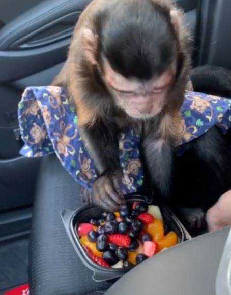 Watch these pet monkeys enjoying a bowl full of fruits on a long drive!