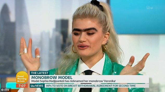 US model Sophia Hadjipanteli, the self-styled founder of the “unibrow movement”, made the admission on ITV’s Good Morning Britain.
