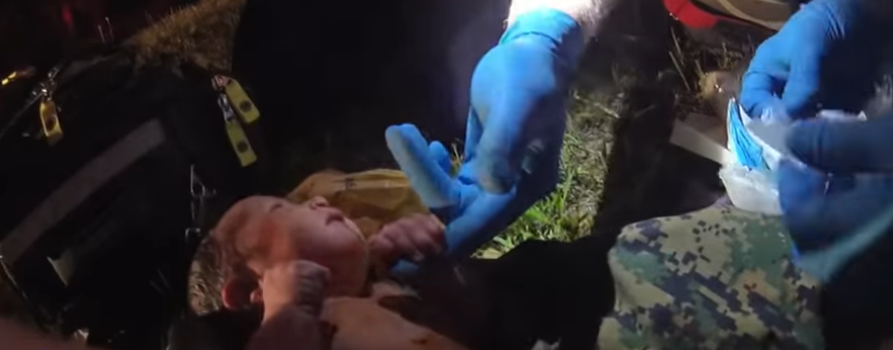 Video footage was posted online where the baby is being rescued. In the video, the man was lying next to the infant, saying that he heart this baby cry from his home.