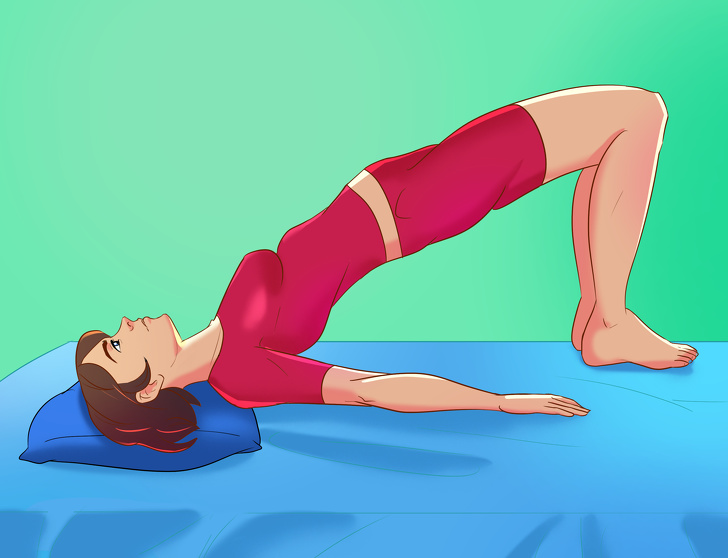 1 Lying on your back, place your feet on the bed, with your knees bent. Legs should be hip-width apart.