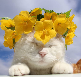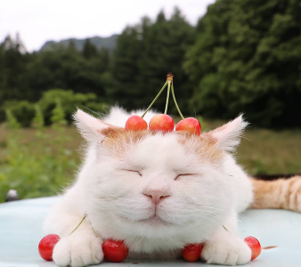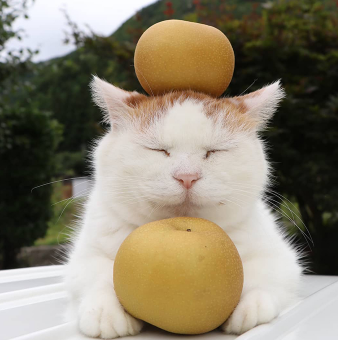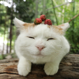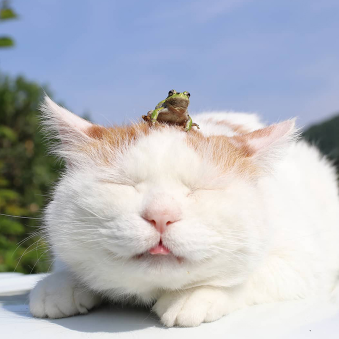 He had his pictures with flower pots, fruits and even frog balancing on its head while this adorable feline creature rested.