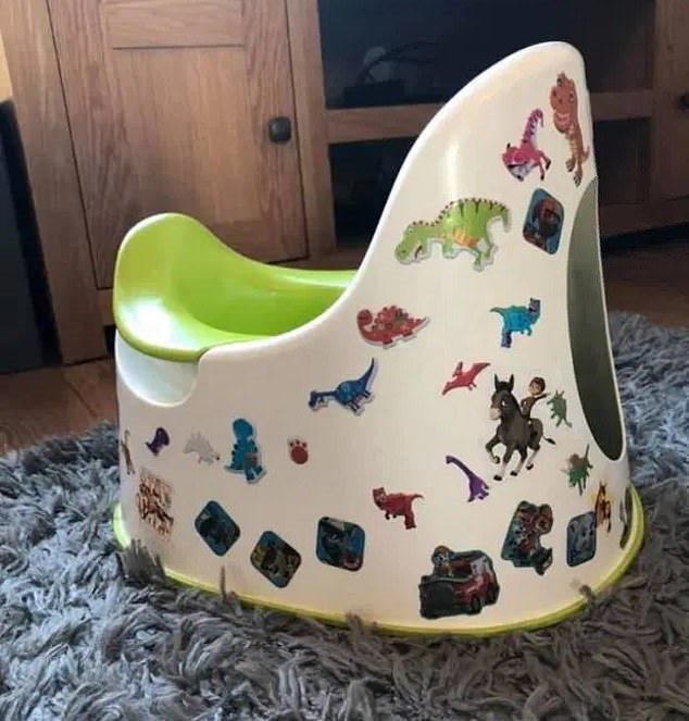 Leanne also said that she rewards her son with a sticker as she shared photos of his potty covered in it.