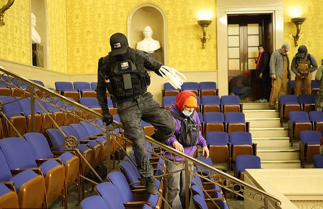A 57-year-old mother and her son were arrested last Sunday after they were seen making their way through the gallery in the Senate during the riot in the Capitol.