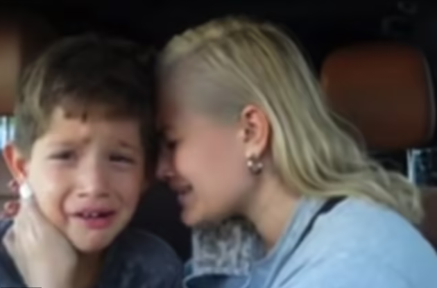 “Act like you’re crying,” she tells her son, to which he replies: “I am crying! I am actually, seriously sad.”