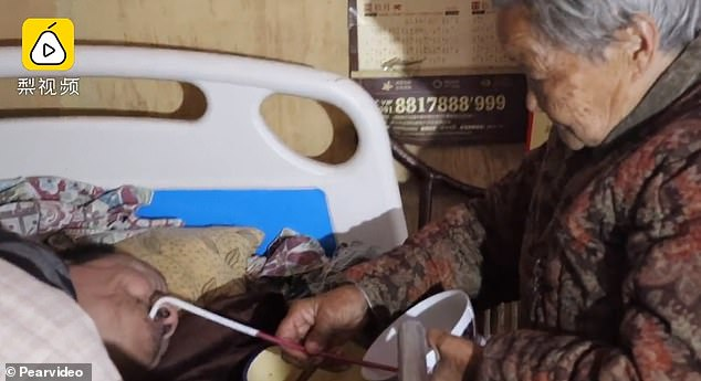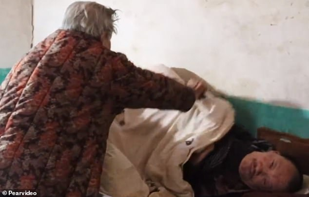 Gao told news website Pear: “My legs (are bent) because it is hard work looking after him every day. I need to use strength when I help him turn over.”