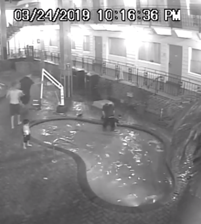 A resort desk clerk watching the surveillance videos radioed a staff member when she thought a child went under.