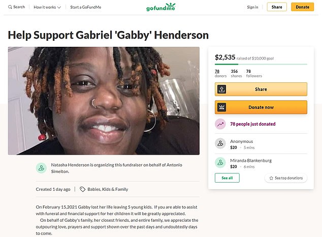 The page reads: “On February 15, 2021 Gabby lost her life leaving 5 young kids. On behalf of Gabby’s family, her closest friends, and entire family, we appreciate the outpouring love, prayers and support shown over the past days and undoubtedly days to come.”