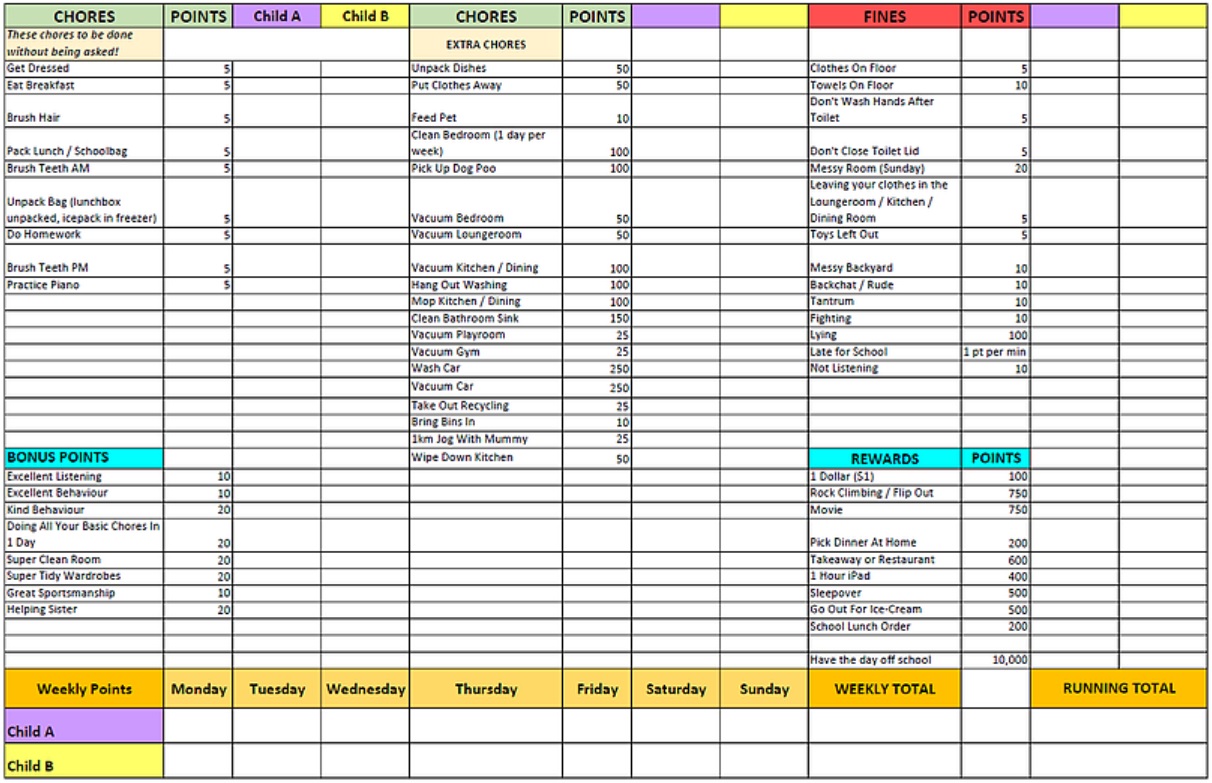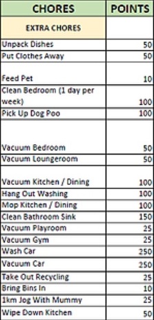 Keira Alexander is an Aussie mum-of-two who decided to create a chore chart to fine or award her kids points based on the chores they skipped or completed.