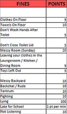 In addition to basic and extra chores, the mum also came up with fines for being late to school, lying, fighting, not listening, and similar instances.