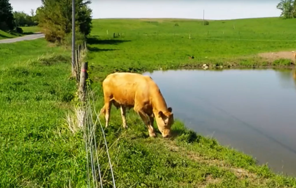 As the baby slipped under the electric fence just after it was born. The fence was near a pond, and it was made to keep the cows save from the predators.