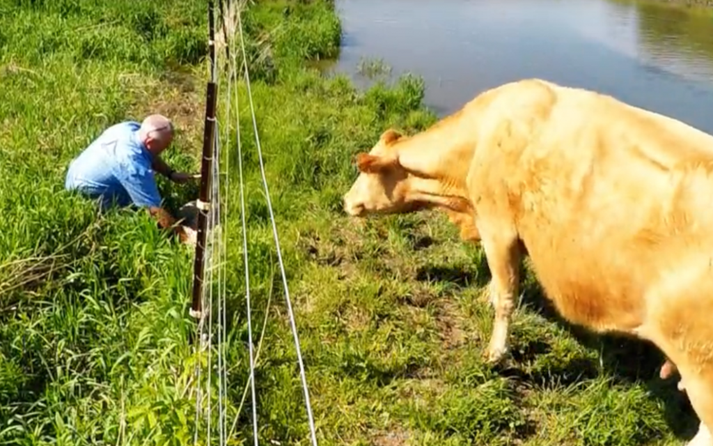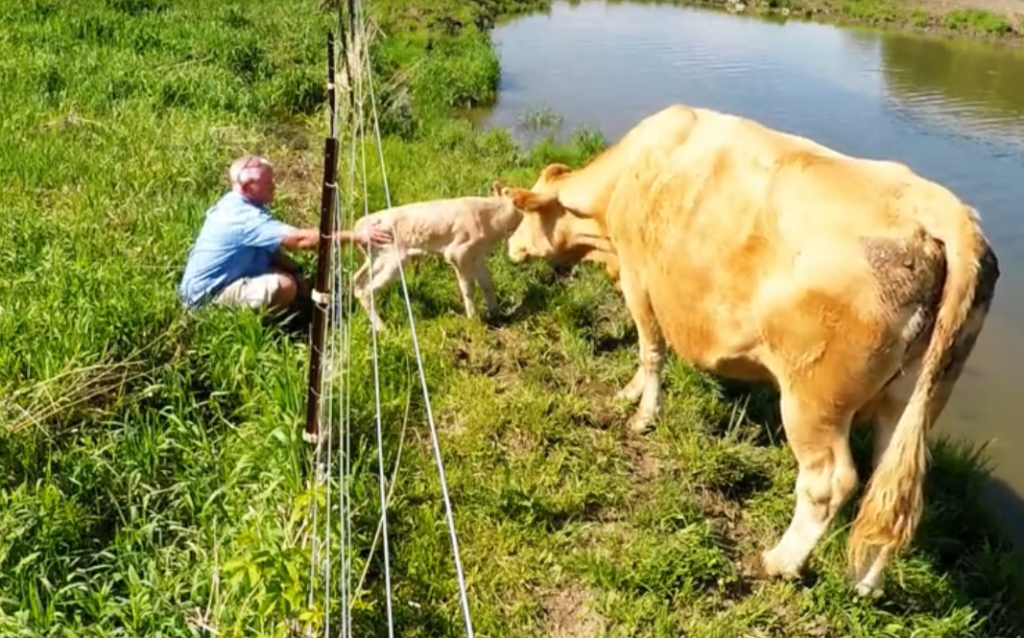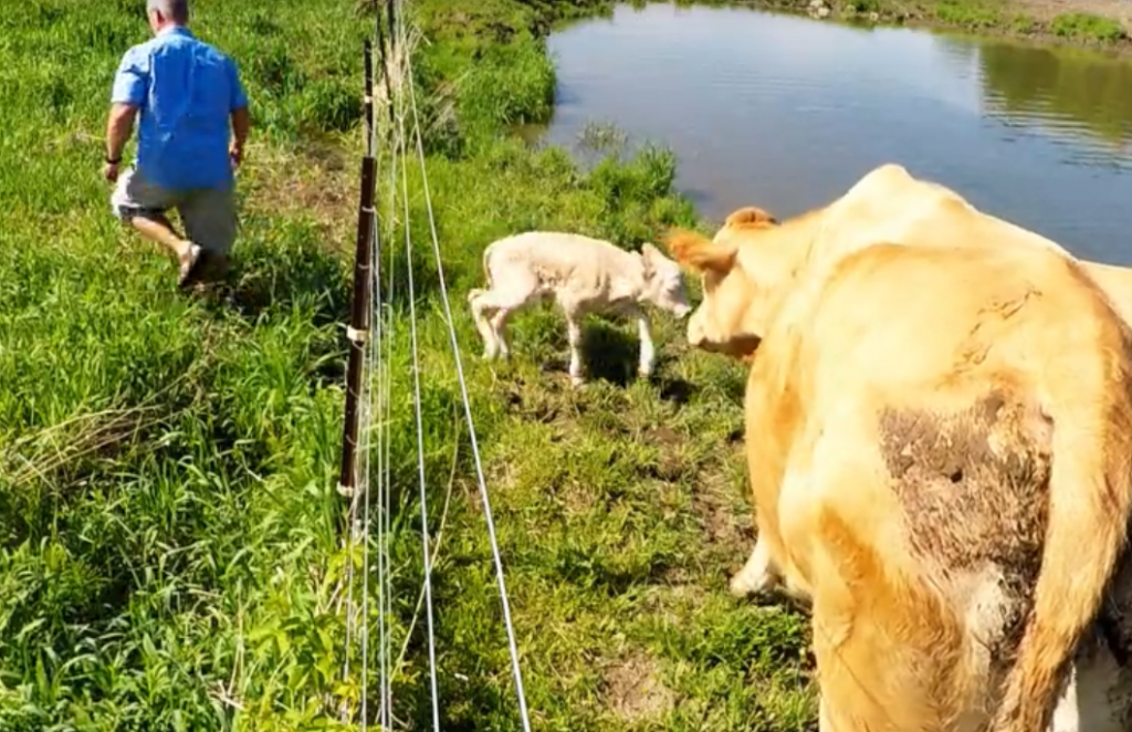 After a while, Dave realized that the cow wasn’t angry, but she was trying to give some signs to him, and when he moved forward he saw the newborn calf on the wrong side of the land.