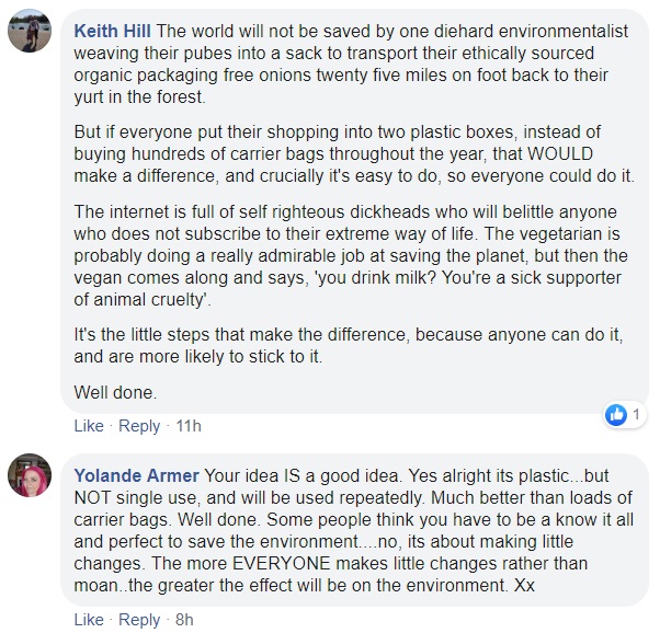 After sharing her life hack complemented with a picture of her groceries, the post quickly went viral with hundreds of people praising her efforts to reduce plastic waste. Despite her best intentions, however, Bonnie was soon confronted with a backlash by angry eco-warriors who suggested she should opt for organic cotton or paper alternatives rather than buy even more plastic.