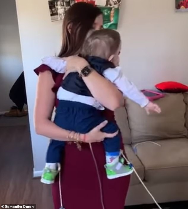 She shared the heartbreaking video on Facebook with the caption: ‘One of the thoughts that I had was that I might never get to have my mother-son dance with my special guy at his wedding because we’re not sure if that day will come.’