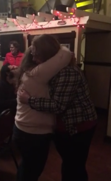They were having a dinner party at CJ Maggie’s Restaurant in Buckhannon, USA when Leah’s sister Hope brought her niece Natalie Rodgers, 20 and adopted mom Anita to the scene.