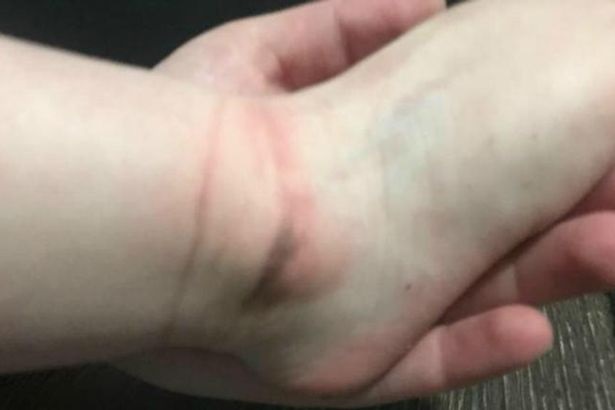 “This was also not just her shoes being taped up it was around her ankle, my 17-month-old child was unable to say anything. This was left on long enough and tight enough to leave marks, cause swelling, and bruise.”