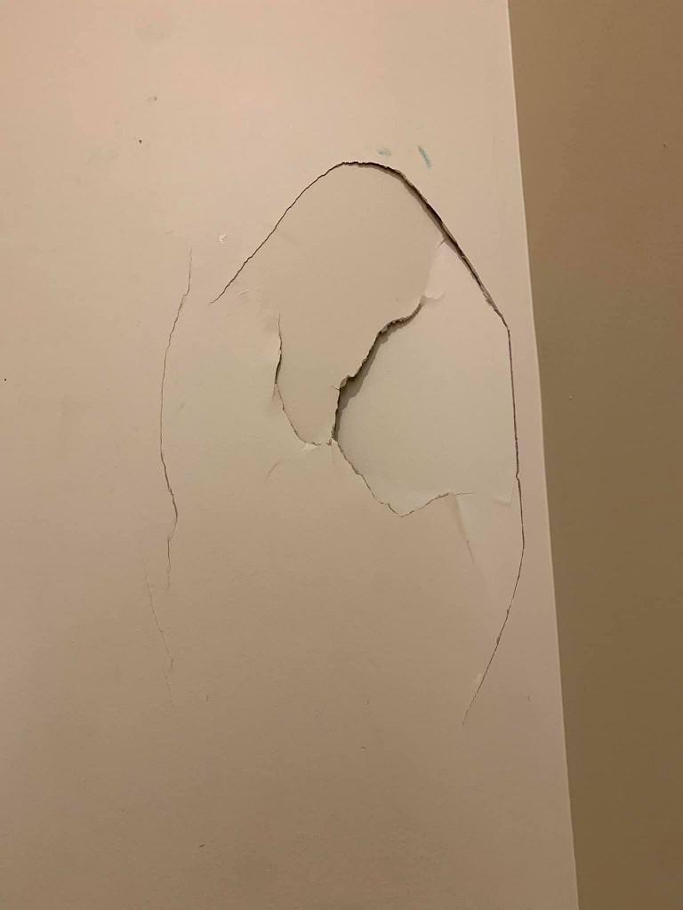 “I walked downstairs and told my husband. ‘The kids put a hole in the wall. A big one. M is really upset about it. She’s working up the courage to come and tell you about it.