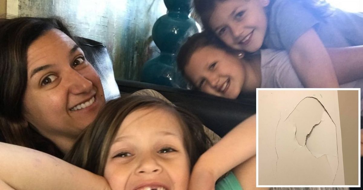 As the mother revealed in her viral Facebook post, her daughters were playing when one of them accidentally slammed into the drywall at their home.