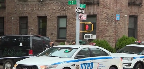 As the mother of three sons, aged 6, 10, and 14, approached the window, she was hit in the head by a stray bullet fired by one of the people involved in a showdown at 34th Avenue in Jackson Heights.