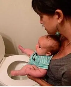 As soon as she noticed her baby wiggling, she grabbed a potty and held him over it until he pooped.