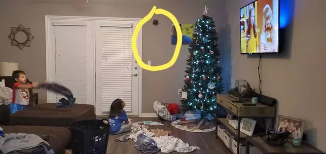 26-year-old Delaney McGuire and her husband Tony from Little Elm in Aubrey, Texas found a ‘budget friendly’ solution to keep their kids from opening presents under the tree by installing a fake CCTV in the room.