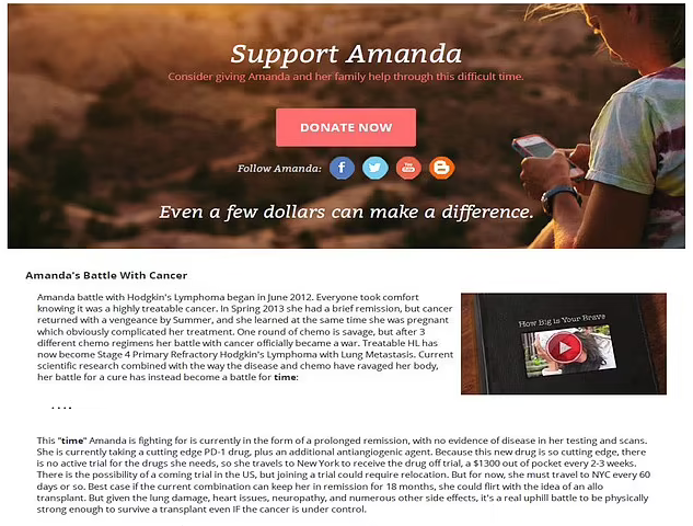 Her blog featured a ‘donate now’ button for visitors to help her fight her illness and donate money online.