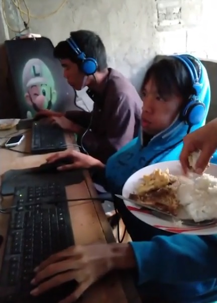 In footage recorded by the woman’s friend, the mother is seen hand feeding her son while he is playing computer games in Nueva Ecija, the Philippines.