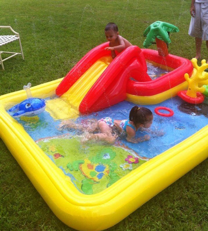 Despite their best intentions, however, the officers were confused when they arrived at the family home only to find two happy kids playing in a swimming pool.