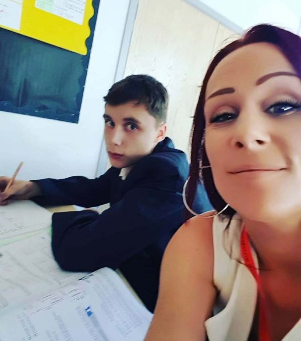 The mother-of-five joined her 12-year-old son’s lesson at The Sittingbourne School in Kent after a teacher informed her about his disrespectful attitude.