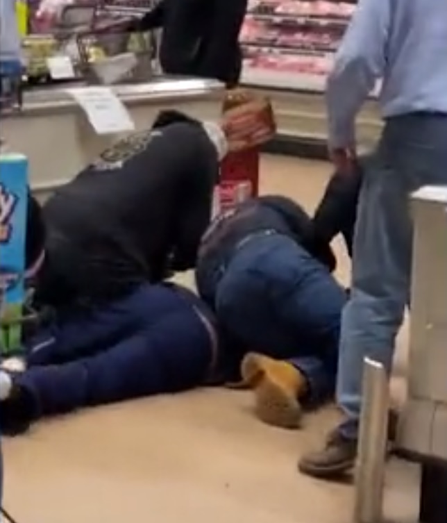 In another unrelated incident, an unruly man was tackled to the ground and apprehended by other shoppers after he started spitting and coughing on food inside a store.