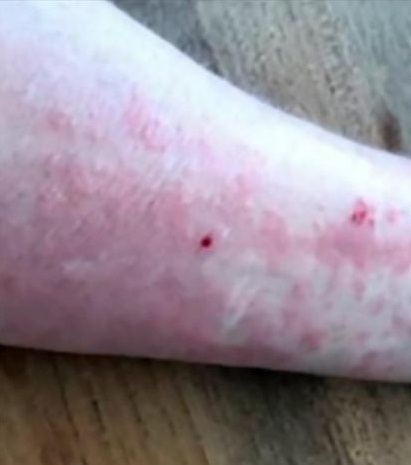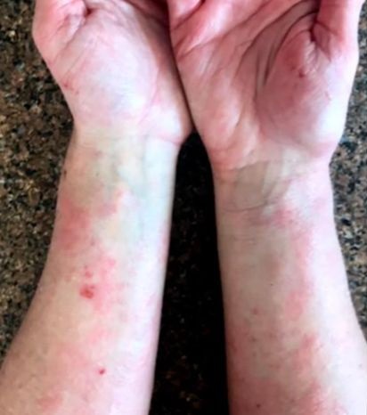 After picking up her chosen tree, the mother immediately developed hives all over her arms and face.